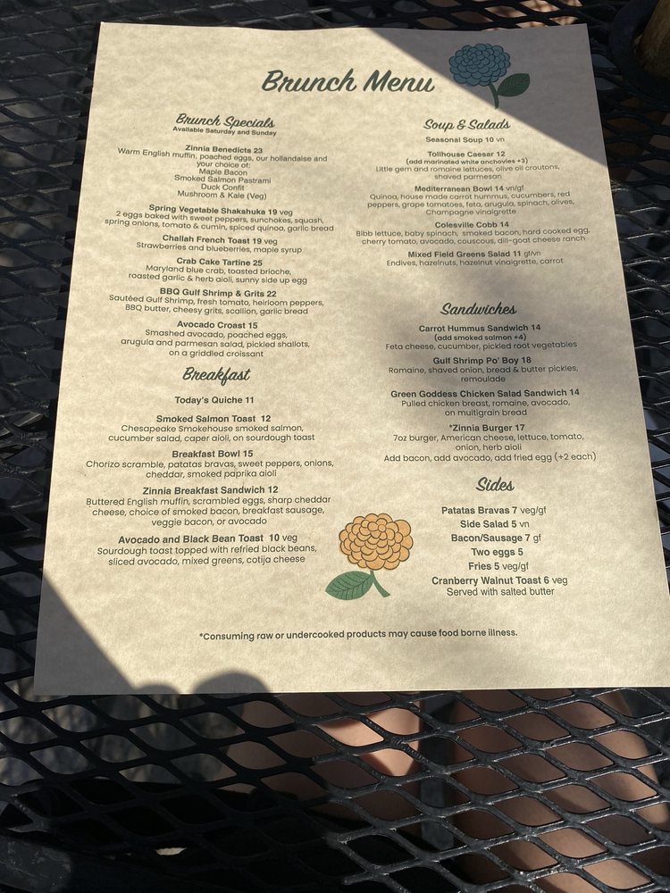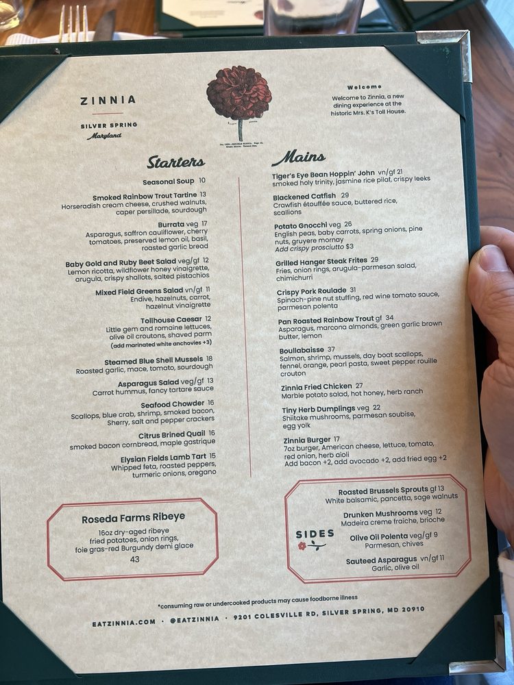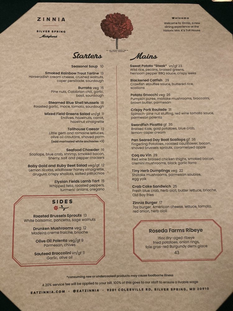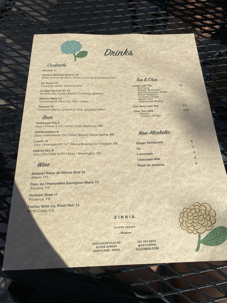 Zinnia Menu (2025 Update)